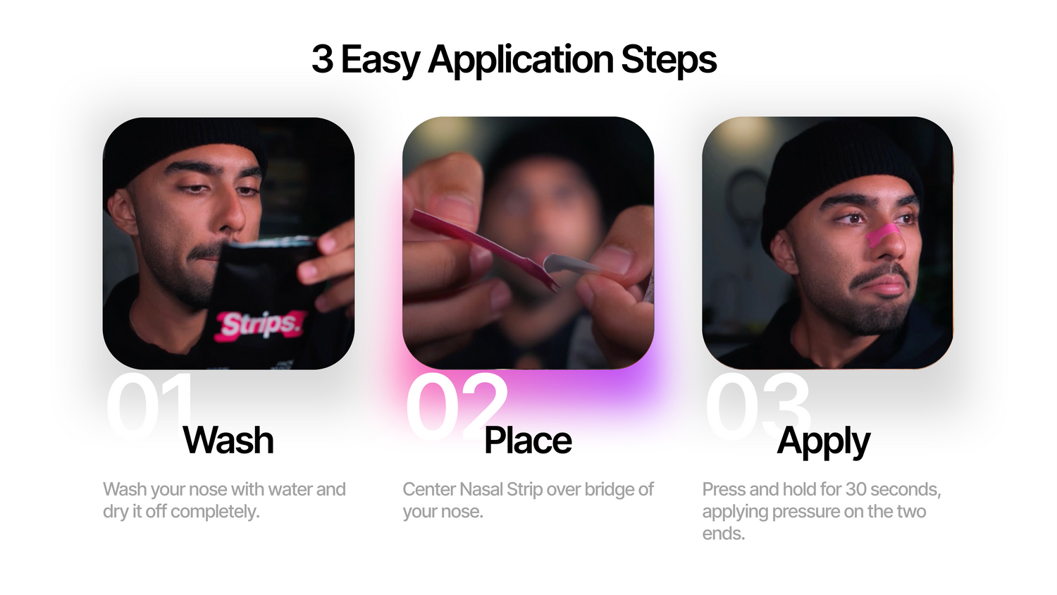Yes, nasal strips are completely safe for most people when used as directed. They’re non-medicated, hypoallergenic and gentle on the skin, but should not be applied to broken or irritated skin. If you have specific concerns, consult with a doctor.